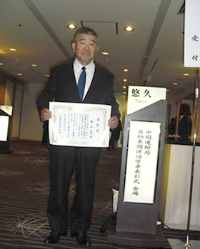 6月1日に広島市にて、当組合の井上理事長が永年の組合功労により中国運輸局の局長表彰を受賞しました。局長表彰は当組合では初の栄誉となります。