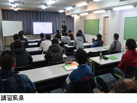 軽自動車をはじめ、アイドリングストップ装着車の急速な増加に伴い修理増加やバッテリーの交換増加などもあり受講者の関心も高く、皆な熱心に受講しました。